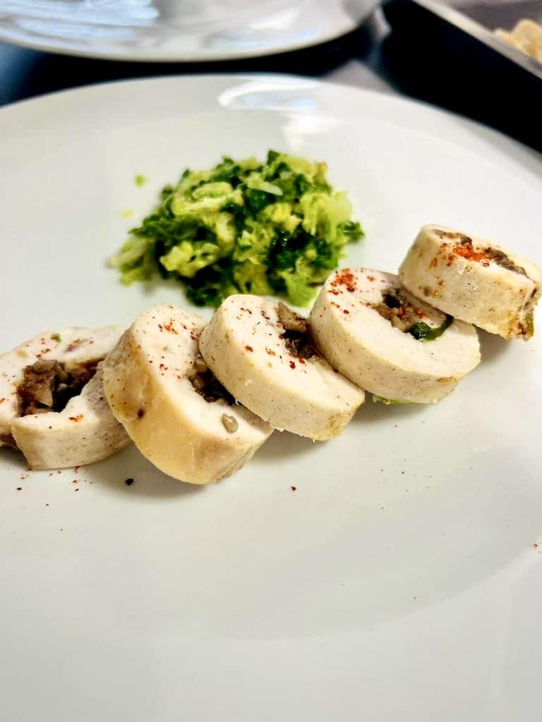 Ballotines de volaille d’automne à la crème de cresson et embeurrée de chou vert