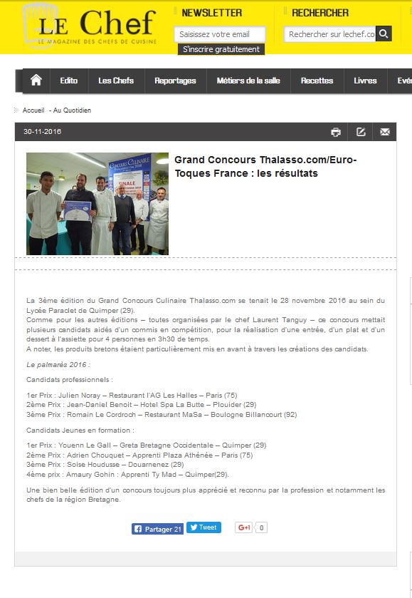 Grand Concours Thalasso.com / Euro-Toques France : Les résultats