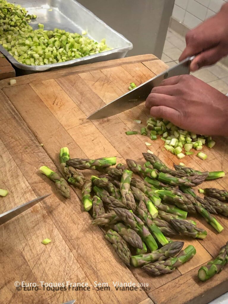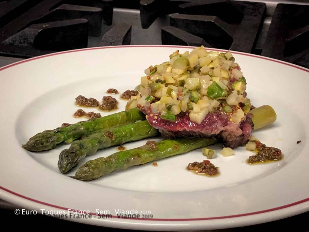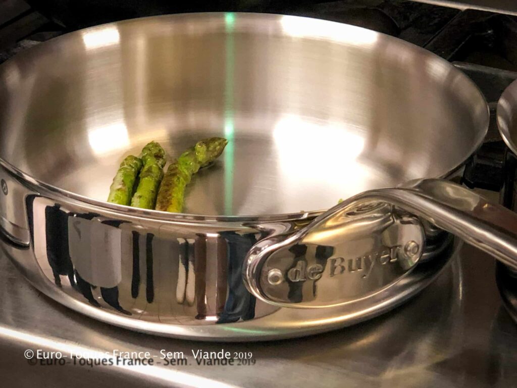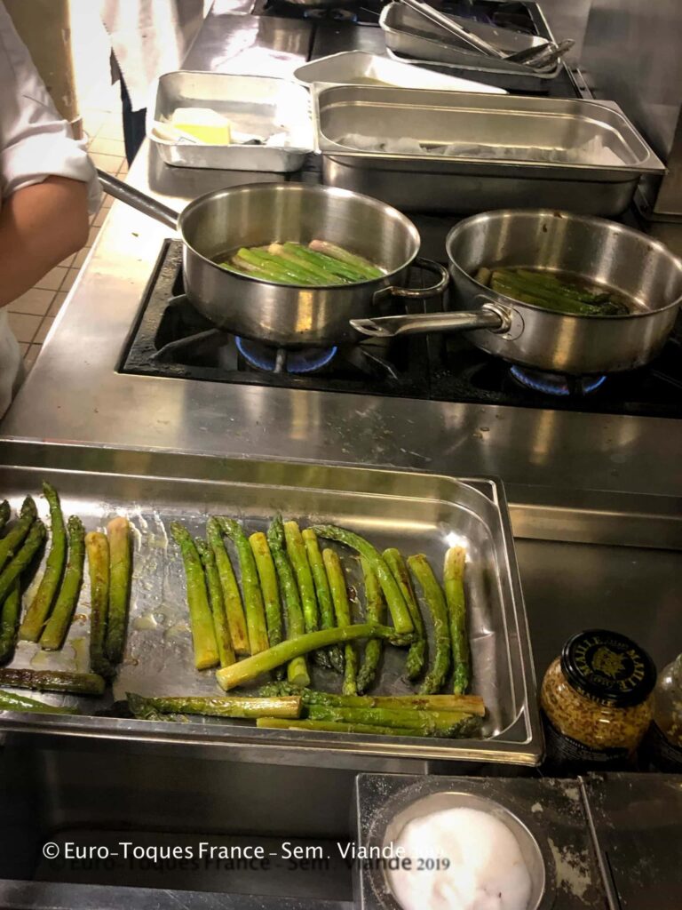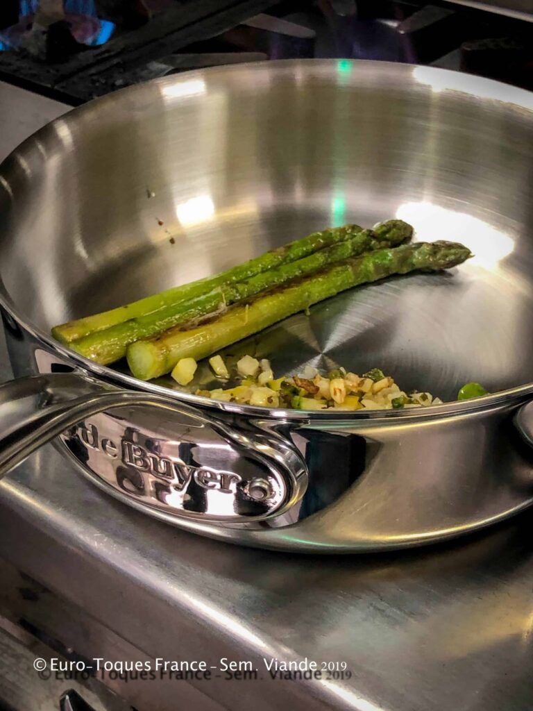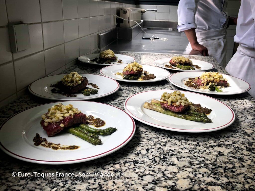 La matinée s’est poursuivie par une master class dirigée par deux chefs Euro-Toques, Yann Roncier (Conseiller Culinaire et ancien Chef propriétaire « Mon bistrot » à Boulogne – 92) et Grégoire Maille (Chef cuisinier et formateur de la Maison Chazal) qui par leur recette réalisée avec de la viande Chazal « Bœuf Angus à l’unilatéral, asperges vertes et condiments sauce Chimichuri » ont démontré qu’il était possible de réaliser une recette succulente avec un bas morceau grâce à une cuisson peu connue et peu réalisée mais qui a su rendre cette viande tendre et goûteuse.