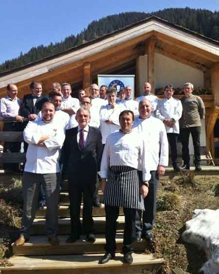 Rencontre amicale des adhérents de Rhône-Alpes, organisée par Gérald Henrion aux Flocons de Sel à Megève, où le chef Emmanuel Renaut vient d’être récemment promus 3 étoiles dans le guide Michelin.  Patrick Bagot -Commissaire Adjoint au Partenariat, Monique Bescond-Ambassadrice de l’Association et Guillaume Gomez – Délégué Adjoint pour l’Ile de France étaient venus se joindre aux chefs et partenaires pour échanger sur les objectifs de l’association.